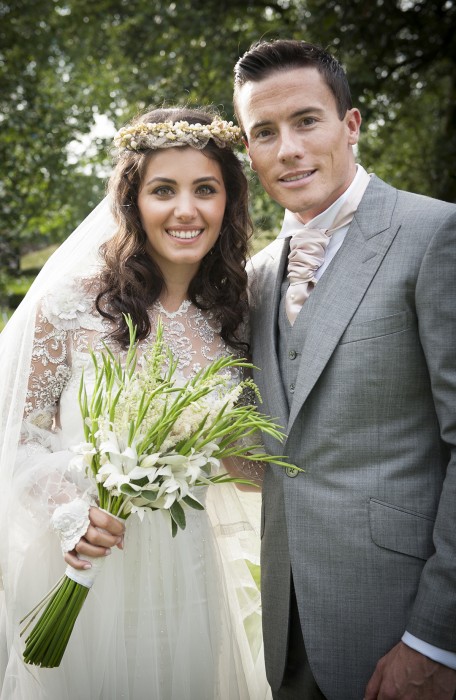 Suknie ślubną zaprojektowała Claire Pettibone.